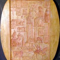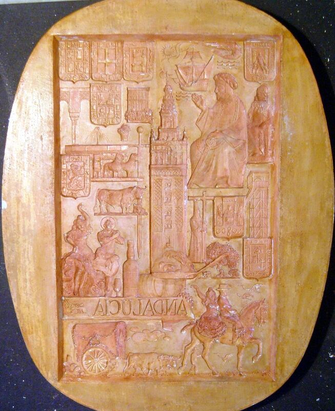- En el centro de esta obra de forma ovalada y firmada se han representado, enmarcadas en un cuadrado vertical, algunas escenas en las que destacan personajes y edificios característicos de Andalucía. Se ha usado el alto relieve.Otros Archivos: Mbo/337 MG/1431