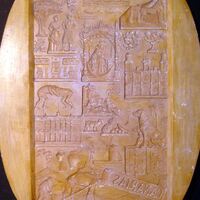 - En esta medalla ovalada y firmada se destacan enmarcadas, algunas escenas alusivas a Canarias. Se han representado las figuras según la técnica del alto relieve. Las letras están al revés como corresponde al negativo de la obra final.Otros archivos: Mbo/342 MG/1427