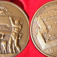 La primera medalla representa en alto relieve a unos hombres portando tablas sobre sus hombros. La segunda medalla representa las vistas de una fortificación de madera, también en alto relieve. Solamente la primera está firmada. Y en ambas se pueden leer palabras en alto relieve.Realizada por Numismatica Iberica anverso y reverso, OTROS ARCHIVOS. MBO/405+419`453+454