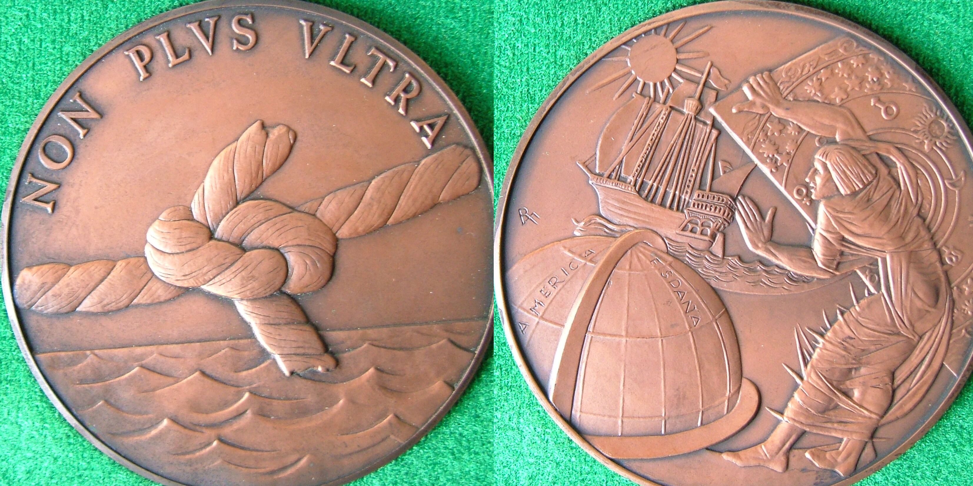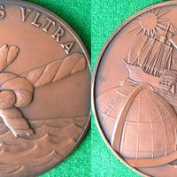 - En la primera medalla destacan un nudo y las aguas del mar mientras que en su parte superior se puede leer la famosa expresión “non plus ultra”. En la segunda destacan una figura humana y algunos elementos del mundo marino. En todas ellas destaca el alto relieve.
