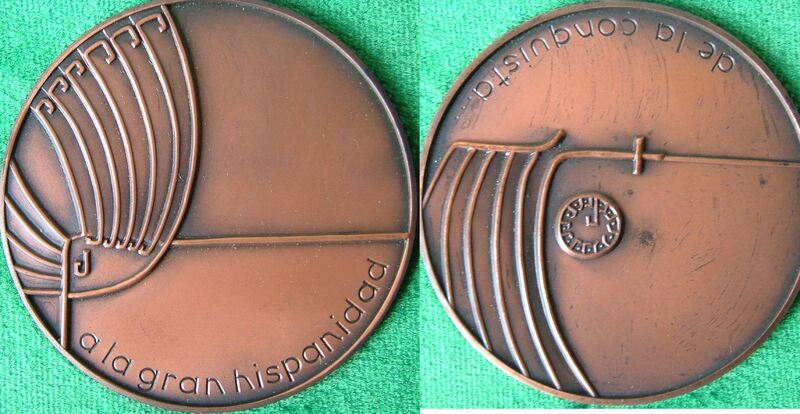- El motivo de ambas medallas, cuyas figuras representadas están en alto relieve, es la conquista y los descubrimientos que llevaron a los españoles más allá de sus fronteras y que se representan de una forma muy simbólica.
