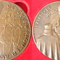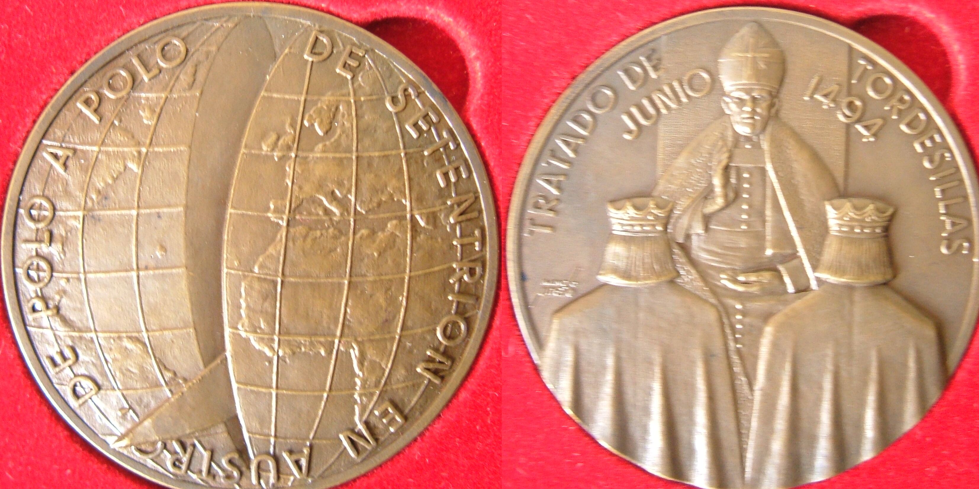 En la medalla de la derecha se representa el mundo y en la segunda, que está firmada, se representa a un alto dignatario de la iglesia bendiciendo a unos reyes. Tanto las figuras como las palabras que hay en ellas están en alto relieve.Numismática Iberica, anverso y reverso OTROS ARCHIVOS. MBO/407+460+461