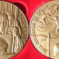 En la primera medalla destacan las imágenes de unos indios saludando. En la segunda algunos hombres corren ante la lluvia de flechas. En ambas medallas está presente la técnica del alto relieve. En la segunda medalla se vislumbra la firma del artista.Para Numismática Íberica, anverso y reverso OTROS ARCHIVOS: MBO/418+479+480