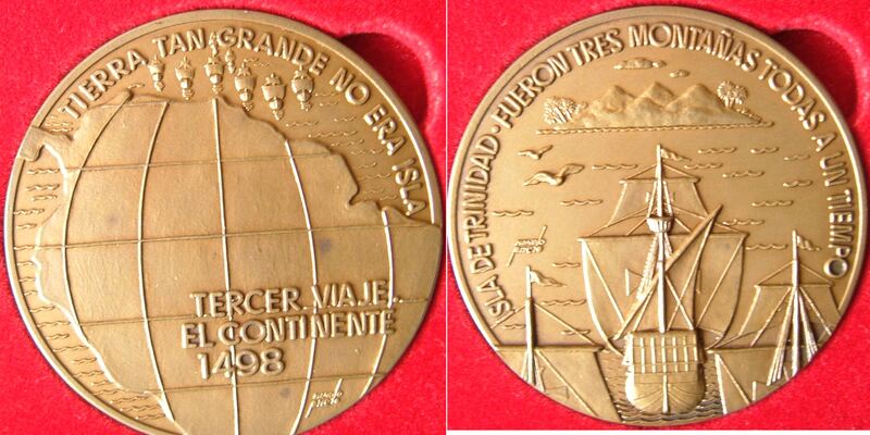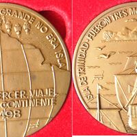 Conmemorando los viajes de los descubrimientos que los españoles han realizado por el mundo se han representado en ambas medallas escenas alusivas a dicho tema, en donde se puede ver el mundo y un barco. La firma del artista está en las dos medallas.Para Numismática Íberica, anverso y reverso OTROS ARCHIVOS: MBO/416+475+476