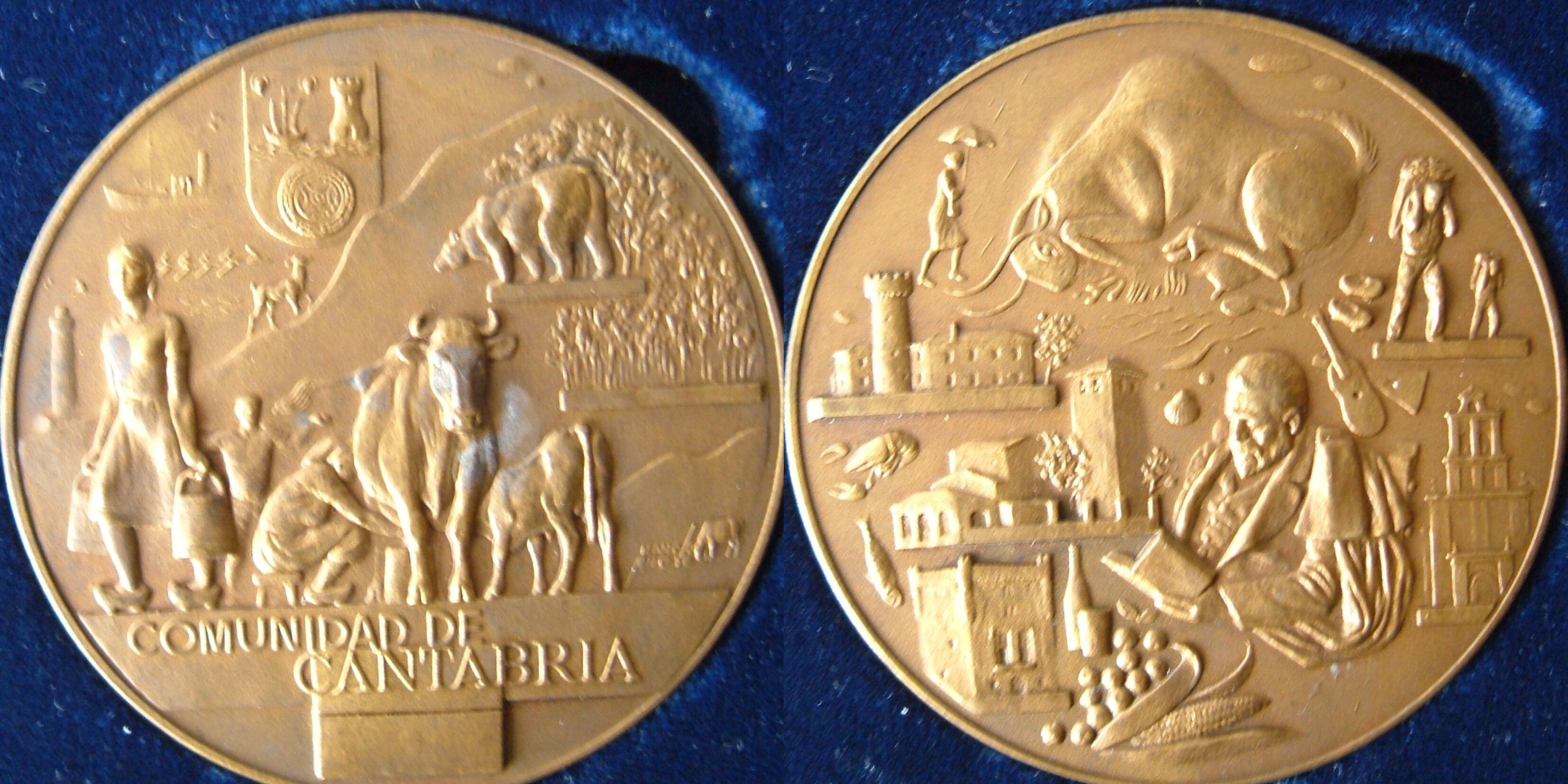 - En las medallas, en las que está presente la firma del artista, se han representado figuras y elementos que configuran las características de la Comunidad de Cantabria inscripción que se puede leer en la primera medalla. En ambas destaca el alto relieve.