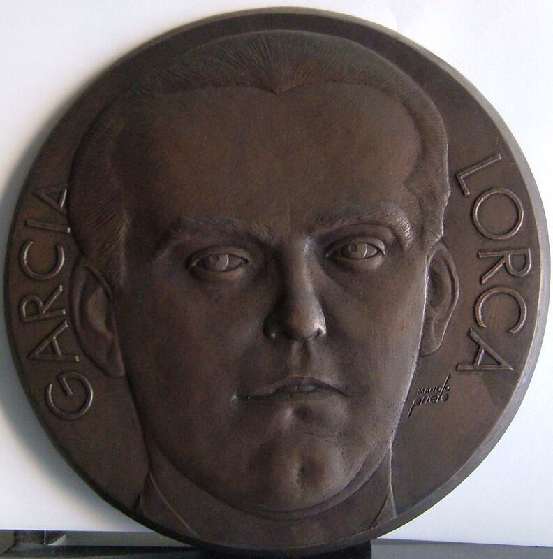 - Fotografía de la cara del una medalla con el retrato del poeta granadino García Lorca. No nos podemos detener en este repaso a su obra completa, a la dificultad técnica de un retrato medallístico a una cara vista de frente.Sin mas referencias. Otros Archivos.: MBO/517 MEP/1686