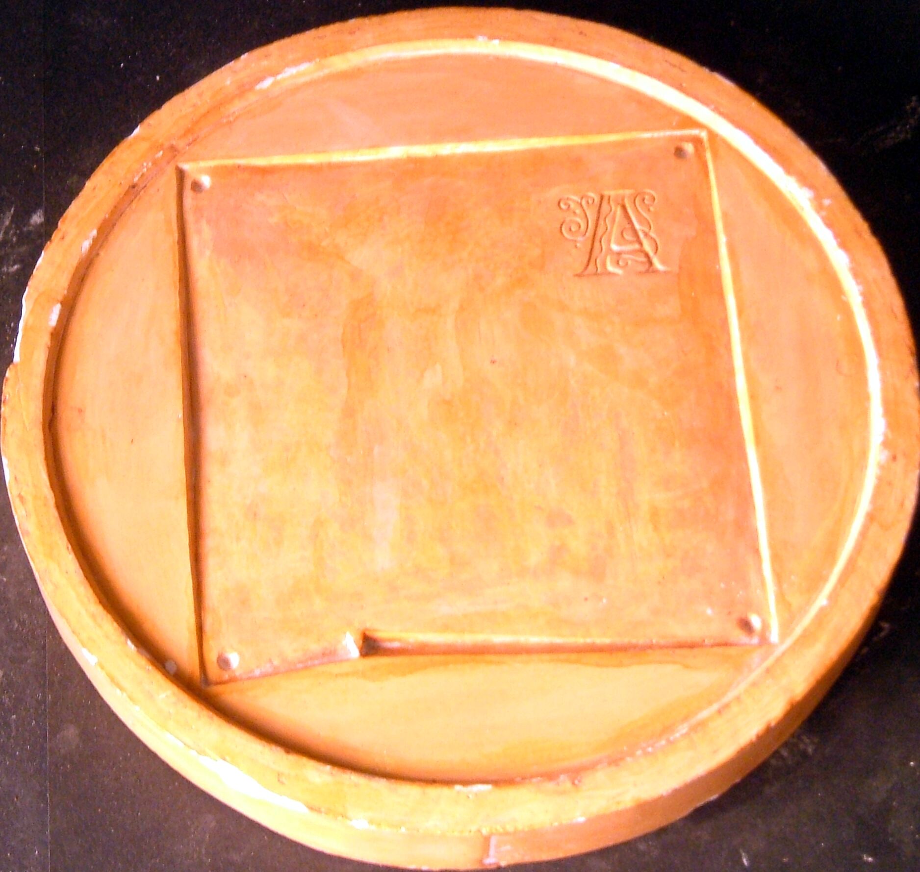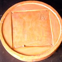 - Fotografía de una de las carcasas del molde en positivo de un vaciado de la cara de una medalla que posteriormente se hará en cera y luego se fundirá se bronce. El espacio liso era, luego, para rellenar.