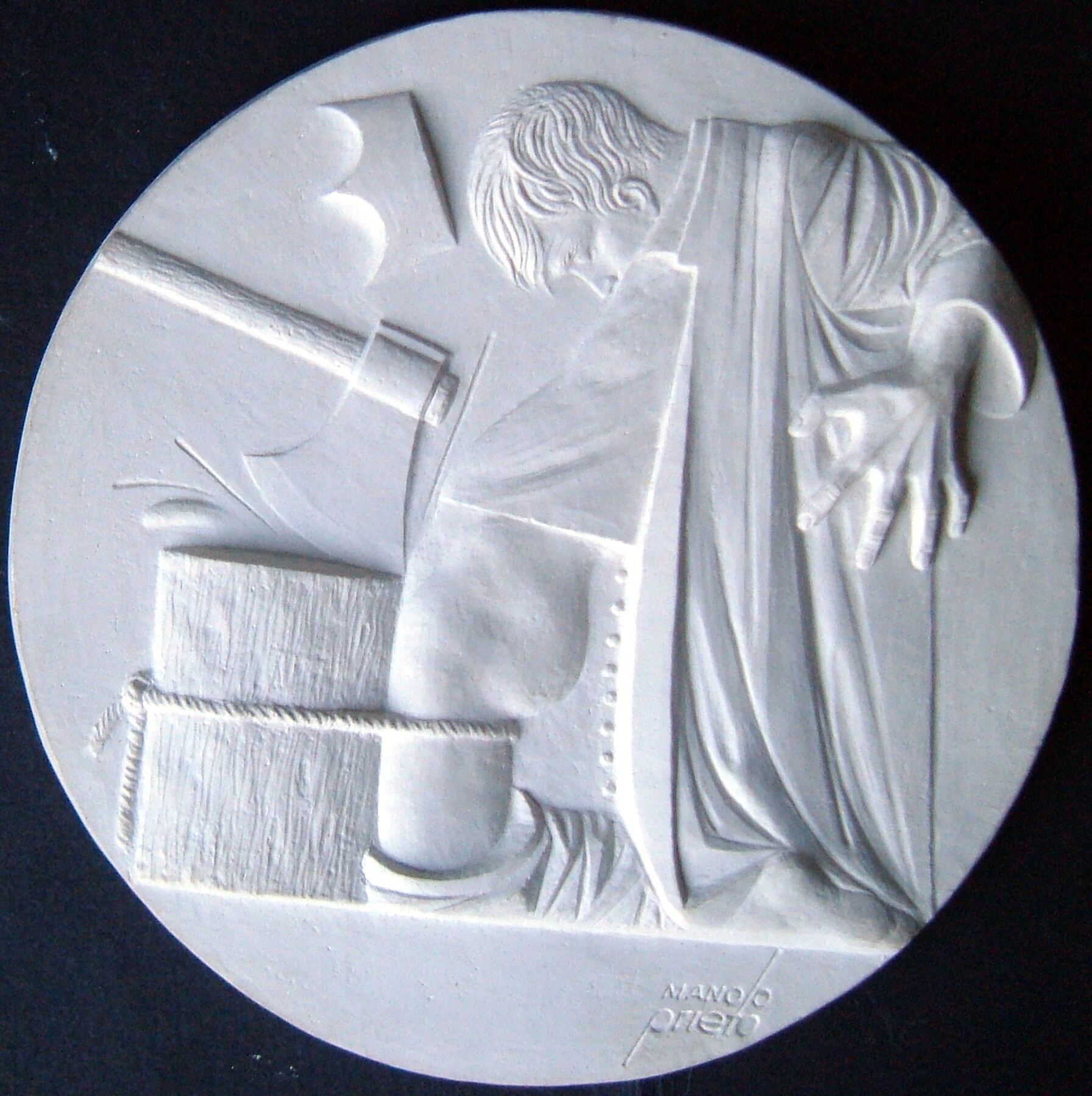 - Bajorrelieve en escayola perteneciente a la cara de una medalla donde se representa la escena de Abelardo arrodillado junto a un podio donde le es guillotinado sus partes más íntimas.