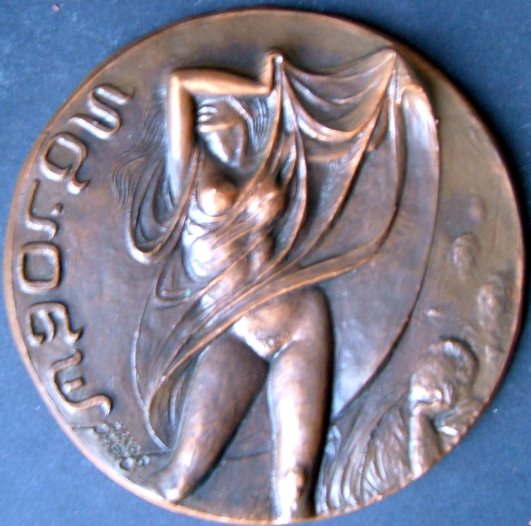 - Bajorrelieve de la cara de una medalla donde se aprecia la figura de una mujer bailando con la falda semilevantada dejando entrever sus partes más íntimas con un movimiento sensual.Serie Manolo Prieto medalla Salomé Otros archivos: Mbo/355 MOP/1734 MEN/1832 MG/1555 Medallas realizadas porManolo Prieto para representar a España con las Exposicionesrealizadas con la FIDEM