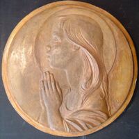 Molde de escayola, con barniz de goma laca, de la cara de una medalla con la imagen de perfil de la Virgen niña.