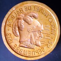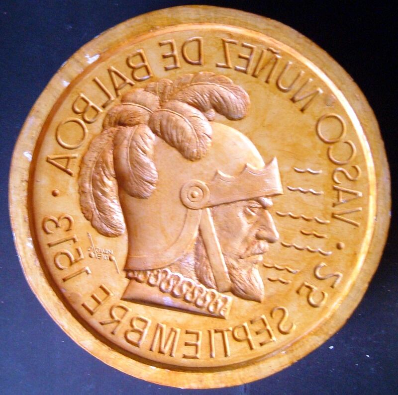 Molde de escayola, con barniz de goma laca, del negativo de la cara de una medalla conmemorativa a Vasco Núñez de Balboa con el retrato de perfil, con la fecha del 25 de septiembre de 1513.Para Numismática Iberica, anverso OTROS ARCHIVOS: MBO/488+489 MBR/1362