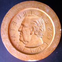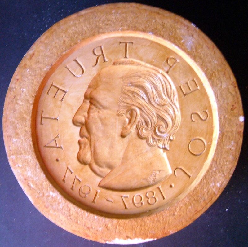 Molde de escayola, con barniz de goma laca, del negativo de la cara de una medalla con el perfil de Joseph Trueta.