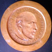 - Molde de escayola, con barniz de goma laca, del negativo de la cara de una medalla donde se representa el perfil de Ramón y Cajal.