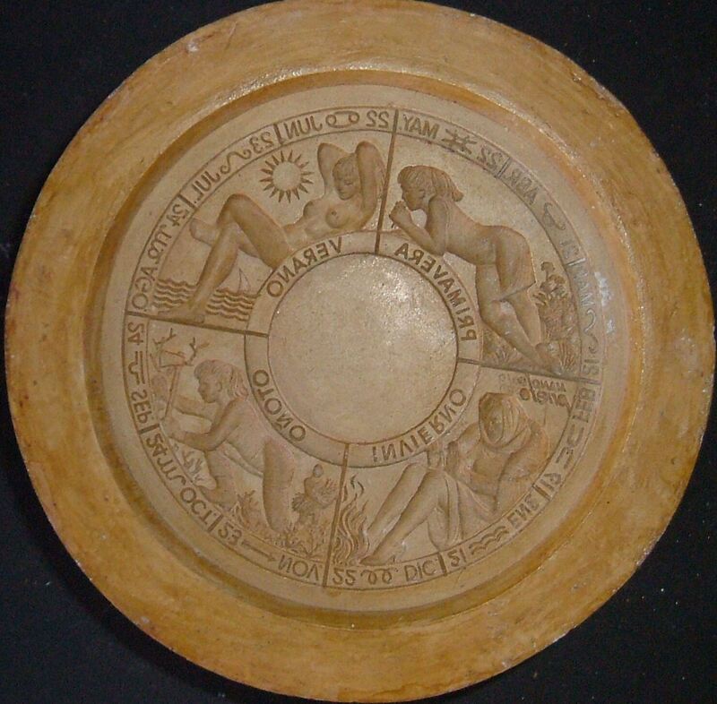 En esta medalla circular se han representado figuras y escrito algunas palabras bajo la técnica del alto relieve. Las figuras representadas en la primera circunferencia hacen alusión a los meses del año y en la segunda circunferencia solamente se leen las estaciones del año. En centro de la medalla queda vacío de figuras.OTROS ARCHIVOS: Mbo/321 realizado.+322+323+324 MG/1542