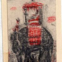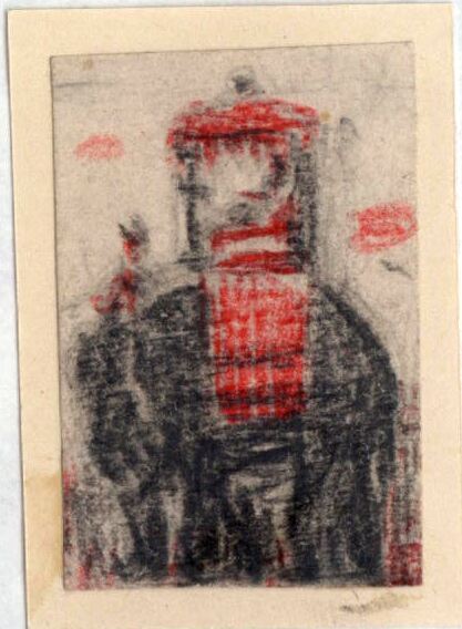 - En la imagen enmarcada destaca un gran elefante negro portando una silla roja de transporte, como es común ver en la India. En el cielo claro hay unas manchas de color rojo semejantes a unas nubes Boceto realizado para la ilustracion semanal de la revista Novelas y Cuentos. Titulo: La selva muda. Autor: G. Martinez Sierra. Nº public. 833. Fecha: 27-04-1947. Tomo: 7. PI/. 310