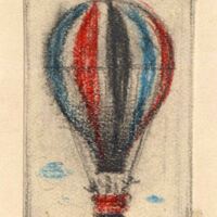 - En el dibujo enmarcado destaca la imagen de un globo de color azul, negro, rojo y blanco. Colores distribuidos en rayas. De su cesto se aprecian figuras humanas que intentan saltar.Boceto realizado para la ilustración de la revista semanal Novelas y Cuentos. Titulo: Autor: Nº publicado: Fecha: Tomo NC.: PI/. No