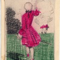 Con el fondo de un paisaje verde dos hombres se enfrentan en un duelo. El caballero más alejado en el dibujo se halla envuelto en humo blanco a causa del disparo y en primer plano se ve la figura de otro caballero de espalda con traje rosa al igual que sus zapatos, y peluquín blanco con un lazo negro. El dibujo está enmarcado.Boceto realizado para la ilustración de la revista semanal Novelas y Cuentos. Titulo: Vida y milagros de Barry Lyndon. Autor: W. M. Thackeray. Nº publicado: 843. Fecha: 06-07-1947. Tomo Nc.: 23