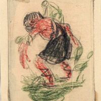 - Envuelto en ramajes verdosos se encuentra un chico medio agachado, ladeado y torciendo la cabeza. Su única vestimenta es una piel negra que le cubre el cuerpo. El dibujo se halla enmarcado.Boceto realizado para la ilustración de la revista semanal Novelas y Cuentos. Titulo: Autor: Nº publicado: Fecha: Tomo NC.