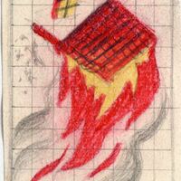 - Una casa en llamas es el tema central de este dibujo enmarcado y cuadriculado. Destacan los colores amarillos, rojos y unas manchas grisáceas como la humareda que se desprende del incendio.Boceto realizado para la ilustración de la revista semanal Novelas y Cuentos. Titulo: Autor: Nº publicado: Fecha: Tomo NC.: