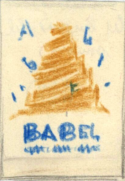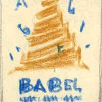 - Sobre un fondo claro se representa la “torre de Babel” con una forma piramidal y dividida en pisos de color amarillo. Alrededor se destacan algunas manchas azules.Boceto realizado para la ilustración de la revista semanal Novelas y Cuentos. Titulo: Autor: Nº publicado: Fecha: Tomo NC.: