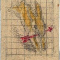 - En una superficie cuadriculada y en un dibujo enmarcado se ha representado a un conejo amarillo corriendo con una flecha roja en la boca.Boceto realizado para la ilustración de la revista semanal de Novelas y Cuentos. Titulo: El amor triunfante. Autor: Rene Bazin. Nº publicado: 1254. Fecha: 22-05-1955. Tomo NC.: 34.