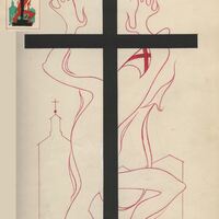 Bajo el título “la gloria de Don Ramiro” en letras rojas se ha representado una gran cruz negra. Detrás destaca la silueta en líneas rojas de una figura que se contornea desesperadamente. En la esquina superior de la izquierda destaca, en un pequeño cuadrado el mismo dibujo en el que destacan los colores verde, rojo y negro. El dibujo está firmado.Original para la portada de Novelas y cuentos