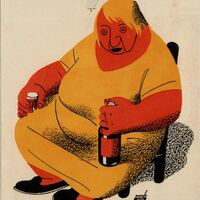 - Sobre una silla está sentada una mujer rubia, con la piel rojiza, corpulenta, con un vestido amarillo, zapatillas negras y una botella en su mano izquierda. Se puede vislumbrar la firma del pintor en la composición.Prueba de imprenta. Ilustración realizada para la revista semanal Novelas y Cuentos. Titulo: Autor: Nº publicado: Fecha: Tomo NC.: