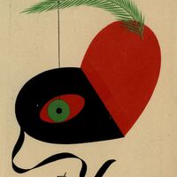 En este dibujo, en el que está presente la firma del pintor, se ha representado un original corazón. Su mitad derecha es de color negro en el que destaca un ojo verde y rojo como también una cinta de color negro. En su mitad roja se ve una pluma verde.Prueba de imprenta. Ilustración realizada para la revista semanal Novelas y Cuentos. Titulo: El apache. Autor: Paul Bourget. Nº publicado: 1079. Fecha: 13-01-1952. Tomo NC.: 42.