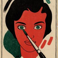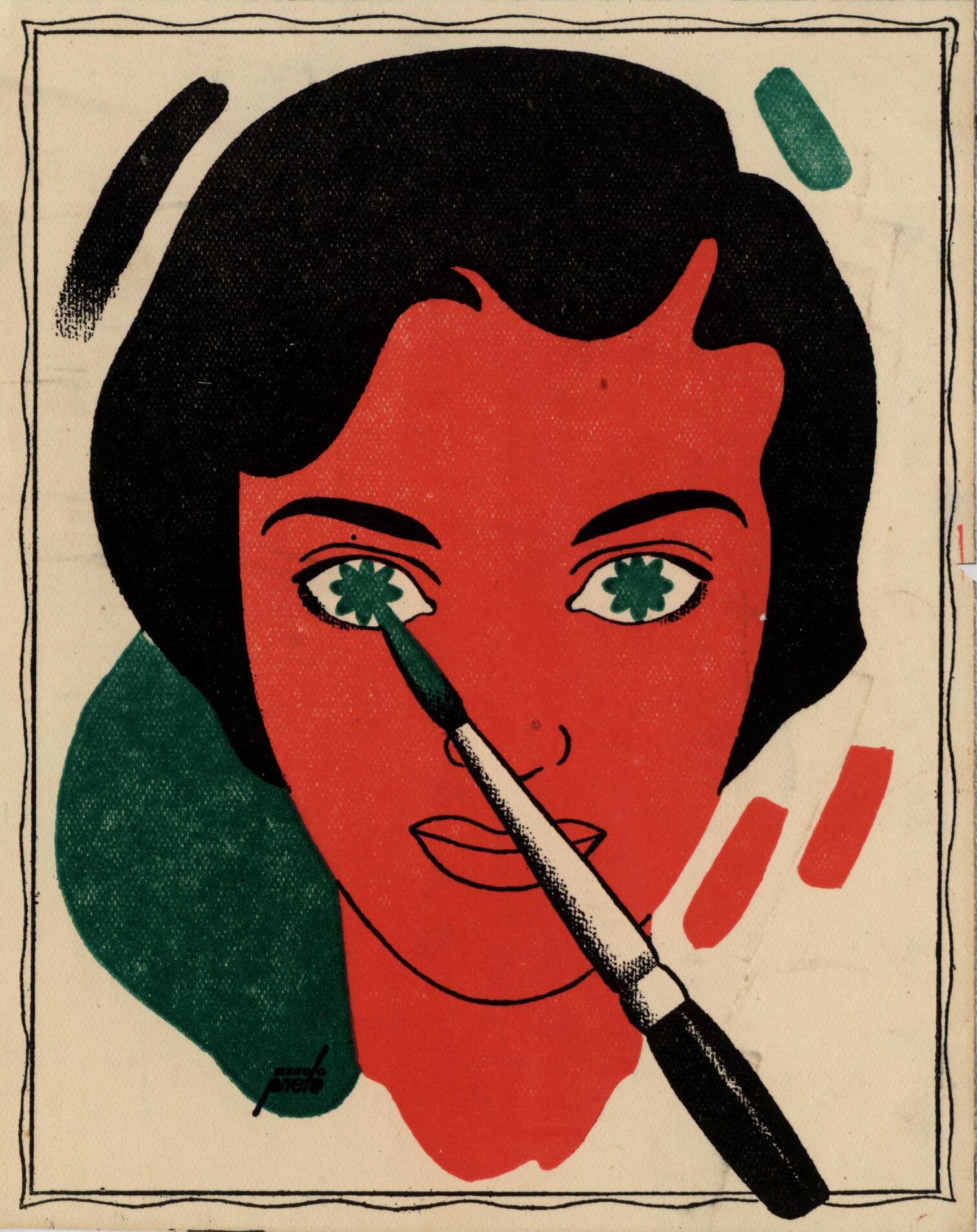 En este dibujo enmarcado y firmado por el pintor, sobre una mancha verde a la derecha inferior, se destaca en el centro el rostro rojo de una mujer con la cabellera negra y grandes ojos verdes. Superpuesta a esta figura se encuentra un pincel negro. Alrededor de la cara femenina se ven algunas manchas negras, rojas y verdes.Prueba de imprenta. Ilustración realizada para la revista semanal Novelas y Cuentos. Titulo: Caliz inagotable. Autor: J.Chmelon. Nº publicado: 1009. Fecha: 10-09-1950. Tomo NC.: 57.