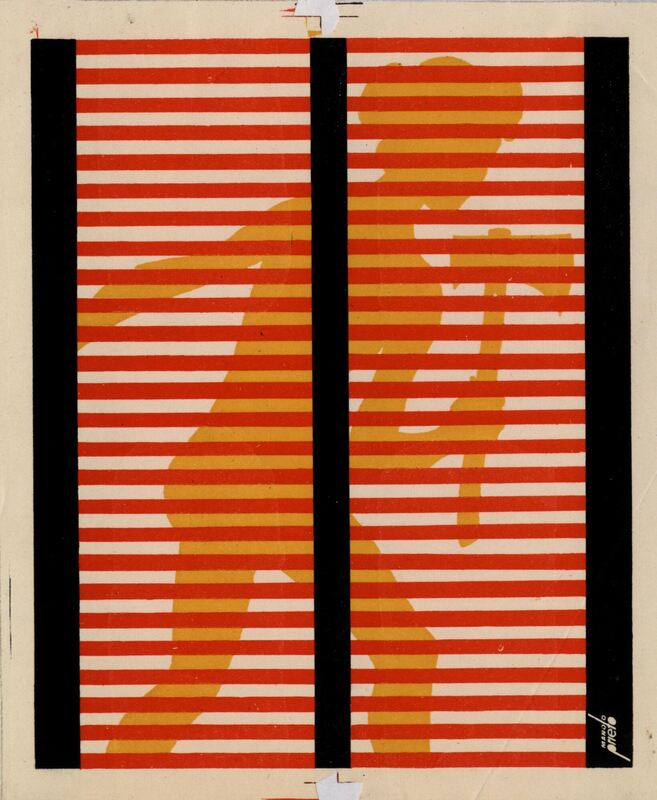 Detrás de una ventana configurada por medio de líneas rojas horizontales y tres líneas negras verticales, dos a cada lado y una en medio, destaca la silueta de una figura femenina de color amarillo con un hacha en una de sus manos. El dibujo está firmado por el artista.Prueba de imprenta. Ilustración realizada para la revista semanal Novelas y Cuentos. Titulo: La casa de la muerta. Autor: A. Abbor. Nº publicado: 1236. Fecha: 16-01-1955. Tomo NC.: 60.