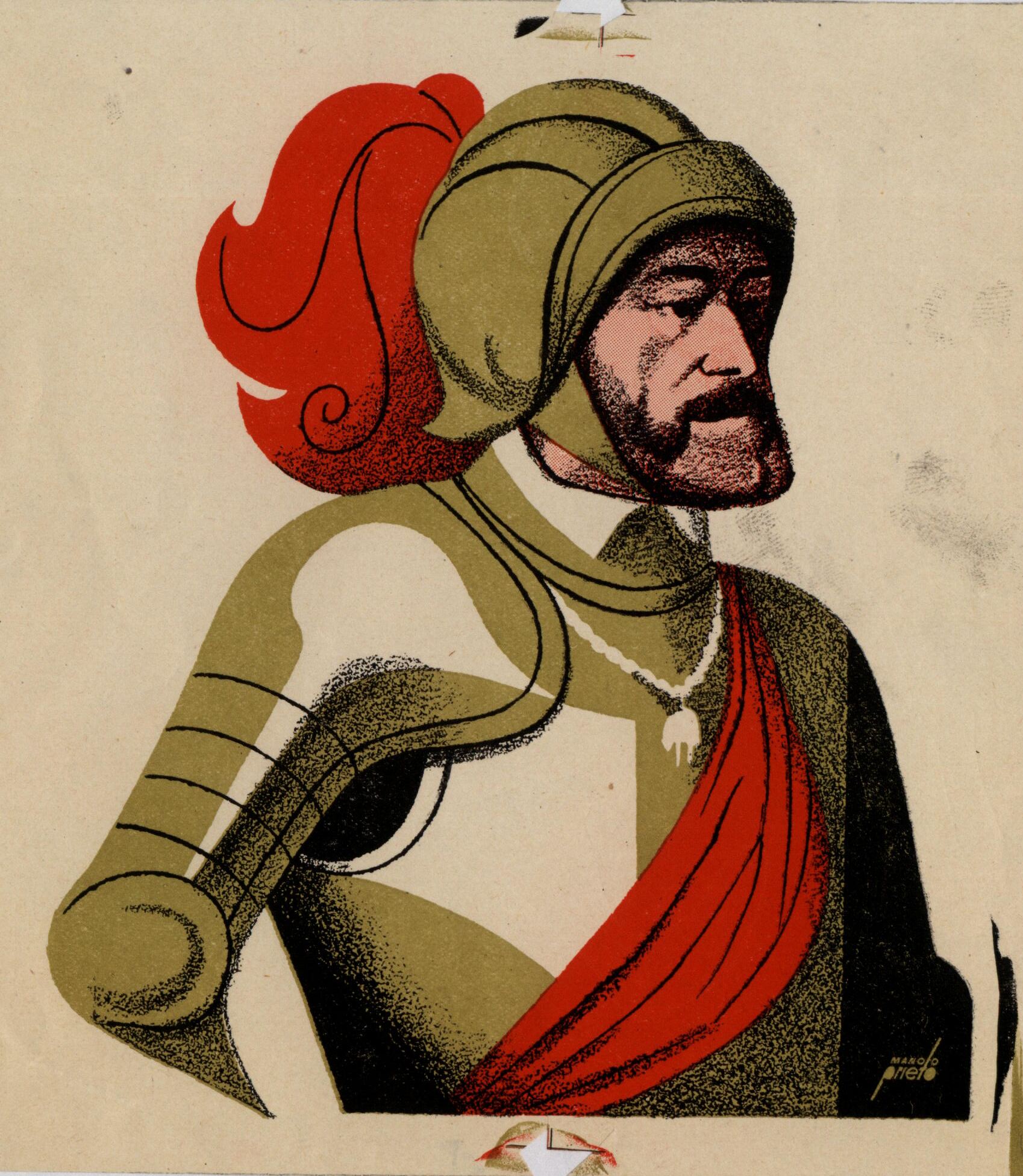 - En este retrato se ha representado al rey Carlos V con una armadura dorada y yelmo con un penacho rojo. Sobre su armadura destaca una banda de color rojo. El dibujo está firmado.Prueba de imprenta. Ilustración realizada para la revista semanal de Novelas y Cuentos. Titulo: Autor: Nº publicado: Fecha. Tomo NC.: