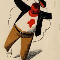 En la composición, en la que se vislumbra la firma del pintor, se ha dibujado a un personaje que se tambalea con los brazos abiertos. Lleva un pantalón marrón claro, una camiseta blanca y una chaqueta negra. Sobre la camiseta blanca se puede apreciar una mancha roja dejando adivinar una herida mortal. Sobre su cabeza lleva un sombrero negro y en su boca sostiene un cigarro.Prueba de imprenta. Ilustración realizada para la revista semanal Novelas y Cuentos. Titulo: Por un milagro de amor. Autor: J. López Saa. Nº publicado: 1298. Fecha: 25-03-1956. Tomo NC. 37.