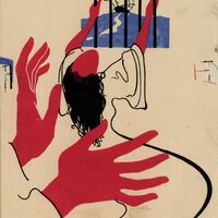 En este dibujo firmado una mujer se agarra a las barras de una ventana en una actitud desesperada. La figura femenina lleva una túnica blanca e inclina su cabeza hacia atrás. Su pelo es negro y lo lleva suelto. En primer plano surgen dos manos que intentan socorrer a la joven. Tras la ventana se ven las aguas azules del mar y un barco navegando en ellas.Prueba de imprenta. Ilustración realizada para la revi8sta semanal Novelas y Cuentos. Titulo: Amor de perdición. Autor: C. Castello Branco. Nº publicado: 1022. Fecha: 10- 12-1950. Tomo NC. 43.