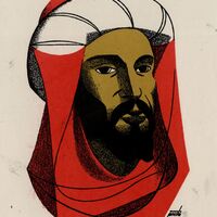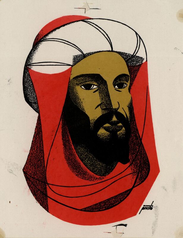 En este retrato firmado se ha representado el rostro de un árabe de frente envuelto en un turbante en el que destacan el rojo y el blanco. En su rostro crece una barba muy oscuraPrueba de imprenta. Ilustración realizada para la revista semanal Novelas y cuentos. Titulo: Abderraman III. Autor: Mariano Tomás. Nº publicado: 1341. Fecha: 20-01- 1957. Tomo NC. 50.