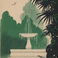 - En un paisaje de verdes árboles, claros cielos, en los que vuelan algunos pájaros, destaca la imagen una gran fuente blanca con agua. Se puede vislumbrar la firma del pintor en el dibujo.Prueba de imprenta. Ilustración realizada para la revista semanal Novelas y Cuentos. Titulo: Autor: Nº publicado: Fecha: Tomo NC.:
