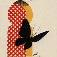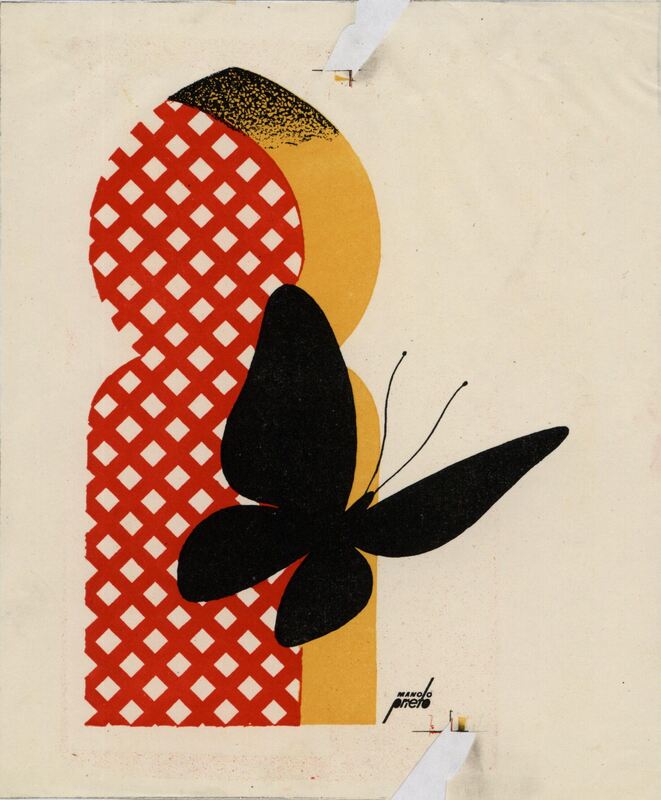 - Dos elementos configuran este dibujo firmado: una ventana al estilo árabe con rejas en forma de rombos y de color rojo y una mariposa negra.Prueba de imprenta. Ilustración realizada para la revista semanal de Novelas y Cuentos. Titulo: Autor: Nº publicado: Fecha: Tomo NC.