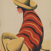 - Dos hombres con sombrero mejicano y uno de ellos llevando un chal con rayas rojas, amarillas y negras componen este dibujo firmado.Prueba de imprenta. Ilustración realizada para la revista semanal de Novelas y Cuentos. Titulo: Ramona. Autor: Hellen F. Hunt Jackson. Nº publicado: 828. Fecha: 23-03-1947. Tomo NC.: