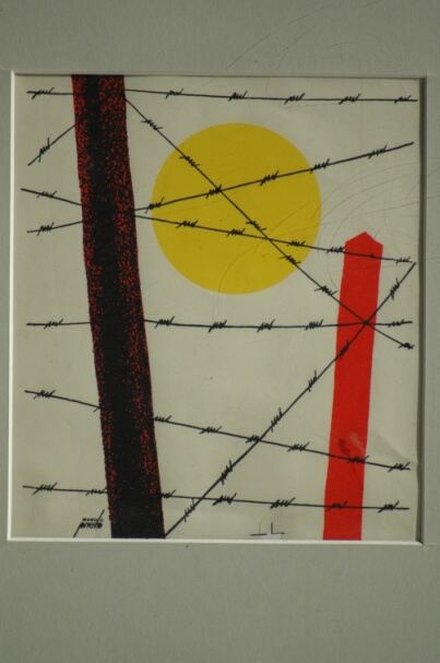 - La ilustración representa al sol que está entre unas alambradas, en primer término hay un poste pintado de negro y hacia la derecha de la ilustración aparece otro poste dibujado en rojo en estos postes están clavadas las alambradas que recorren toda la ilustración. Al fondo hacia arriba el SolPrueba de imprenta. Ilustración realizada para la revista semanal de Novelas y Cuentos. Titulo: Autor: Nº publicado. Fecha: Tomo NC.: