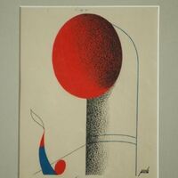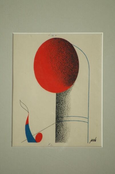 Una chimenea de barco, el boquete pintado de rojo y sombreado en negro, en la parte inferior se dibuja un personaje que con un pañuelo está despidiendo al barco, el personaje pintado la cabeza y una mano de rojo, traje de azul. La firma se encuentra en la parte inferior derecha.Prueba de Imprenta. Ilustración realizada para la revista semanal de Novelas y Cuentos. Titulo: Partir. Autor: Roland Dorgeles. Nº publicado: 1293. Fecha: 19-02-1956. Tomo NC. 46.