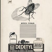 - En este cartel publicitario se anuncia, en la parte inferior, un producto llamado “dedetyl” que lucha contra los insectos como el que se puede apreciar en el centro en color negro, la mosca común. Destacan las líneas negras sobre un fondo claro como también la firma del pintor en la parte superior de la derecha.