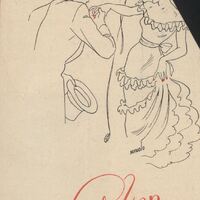 - Dibujo a lápiz negro que perfila las siluetas de los personajes que componen la escena, que representa a un caballero de espaldas besando la mano de una mujer vestida de época, con la presencia del rojo en las uñas de la mujer y el letrero que da nombre al dibujo.