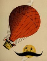 TON SAWYER A TRAVES DEL MUNDO Representado en el cielo un globo, ligeramente inclinado y de color rojo realiza su vuelo mientras lo observa un sol de grandes ojos y bigote espeso y oscuro, quizá como representando algún cuento de viajes.Boceto realizado para la ilustración de la revista semanal Novelas y Cuentos. Titulo: Ton Sawyer a través del Mundo. Autor: Mark Twain. Nºpublic.: 1073. Fecha: 02-12-1951. Tomo NC.: 47. PI/. 149.
