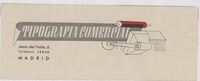 Tipografía comercial Cartel con el rótulo de Tipografía Comercial en letras blancas sobre fondo gris en cuyo extremo se aprecia el dibujo de una maquinaria de impresión de la sale el rótulo del cartel.